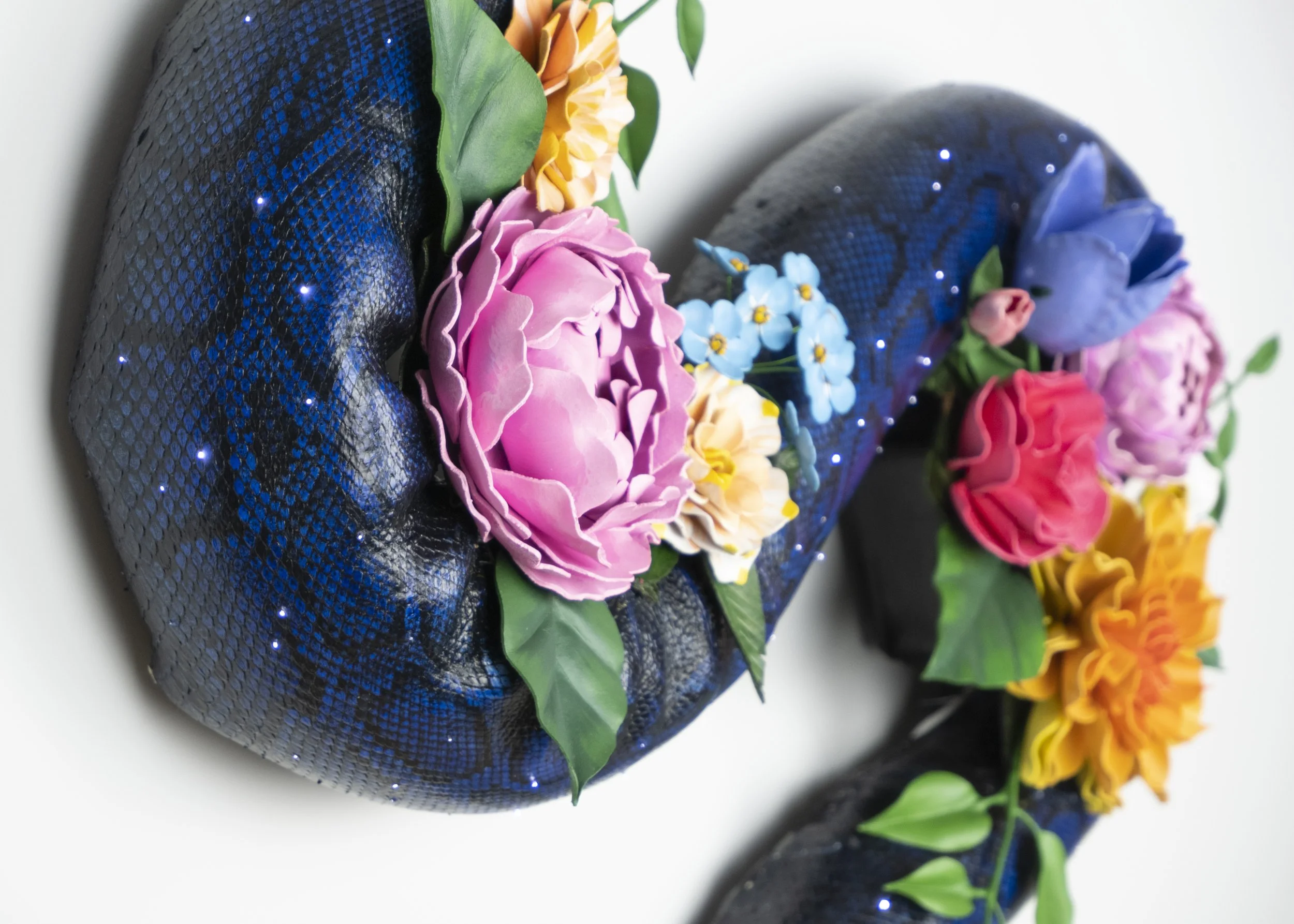 In fine art, I am the first to use Burmese python leather as a primary medium. Its bold scale patterns and natural strength invite new artistic possibilities, while each piece represents direct ecological restoration in the Everglades. Through my practice, invasive pythons are transformed from destructive force into works of art that unite beauty, material innovation, and conservation impact.
