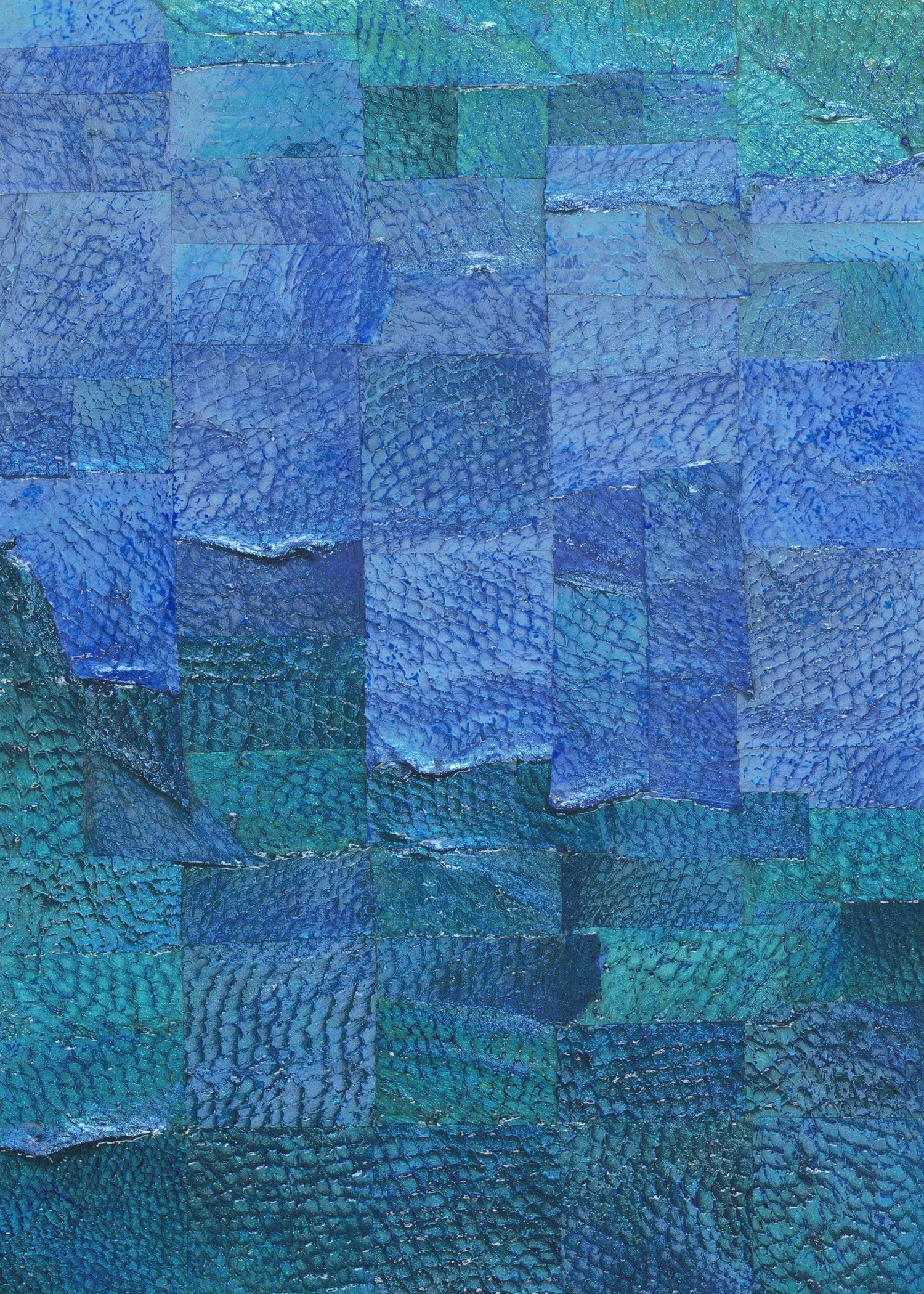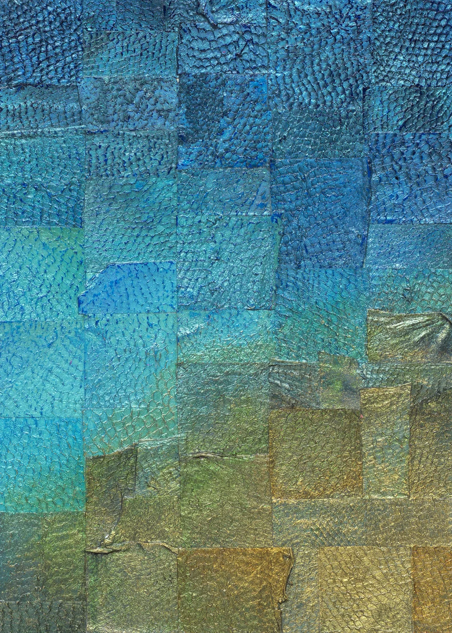 In response, divers organize harvests, chefs prepare lionfish as a delicacy, and designers reclaim their skins for sustainable leather goods. But in fine art, I am the first to use lionfish leather as a medium. The skin itself holds a distinctive beauty, with intricate scale-pocket textures that catch paint in unexpected ways and make each piece entirely unique.