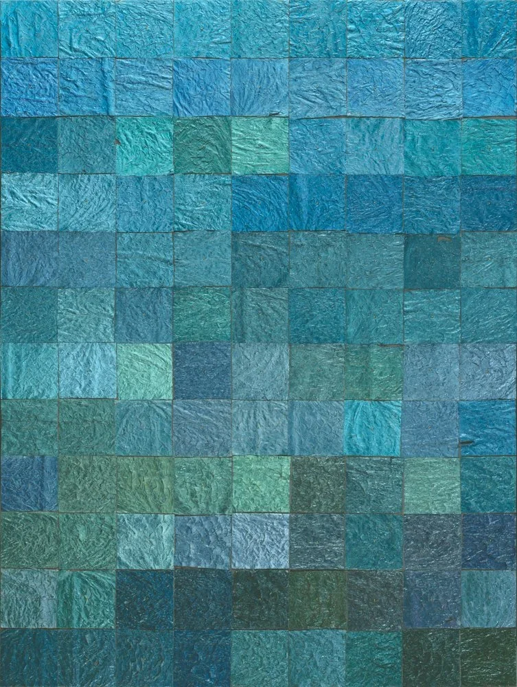 Against this backdrop, I use carp leather as a fine art medium. Its unexpected textures, created by the scaled surface, absorb paint in layered and surprising ways. In transforming these invasive skins into lasting works of art, my practice reveals their beauty while actively reducing their harm, helping restore balance to freshwater ecosystems.