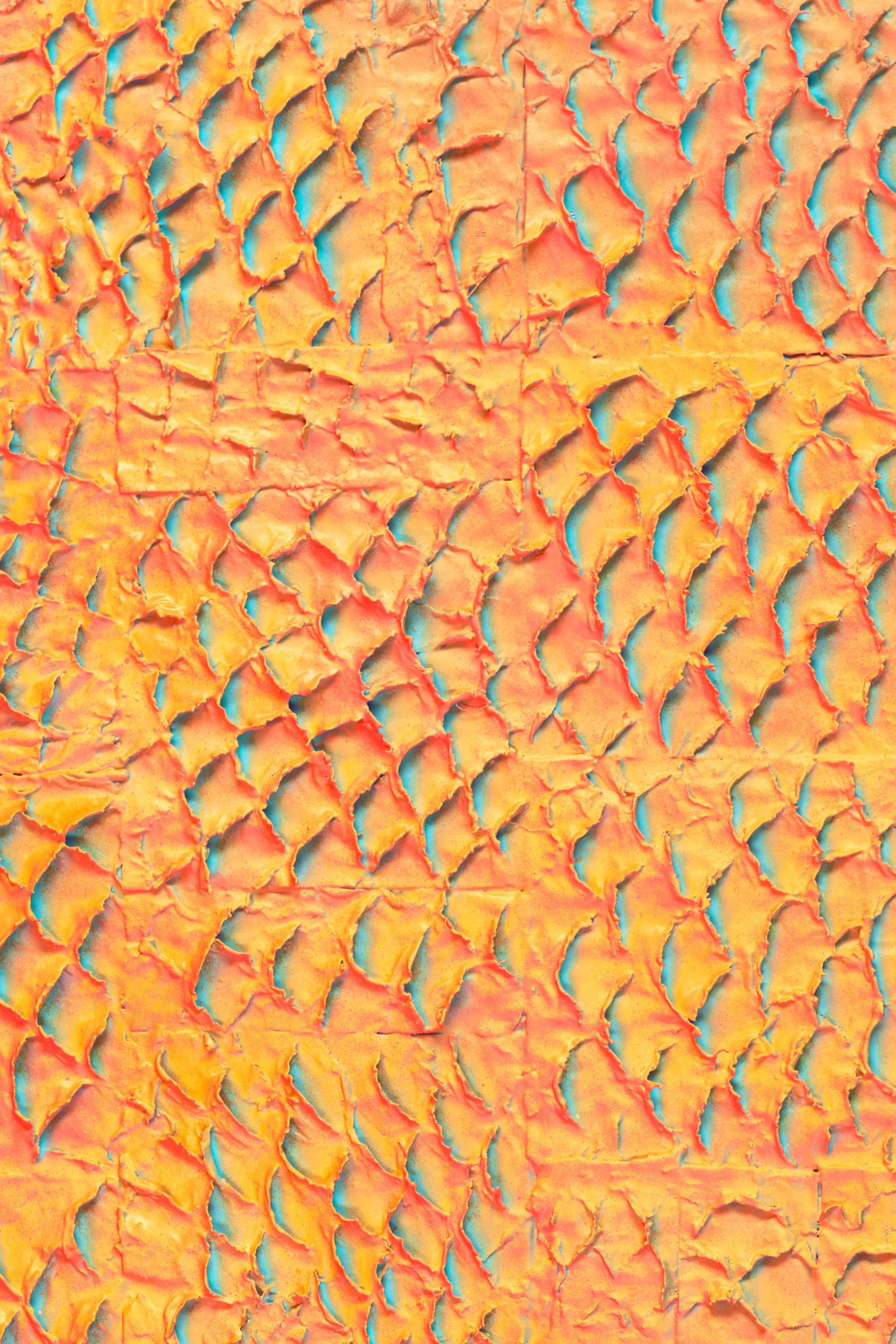 This work was painted on leather from invasive lionfish removed from coral reefs. Lionfish consume the junior native reef fish that keep algae in check. When those fish disappear, reefs can suffocate. Removal matters, and this artwork begins there, in the material itself.